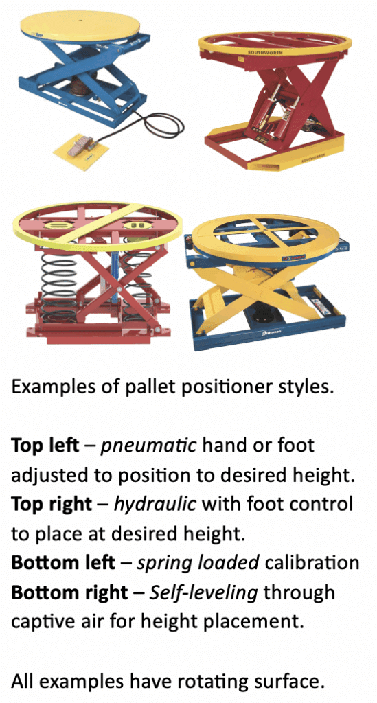 At DORN Companies, we’ve encountered this issue firsthand during ergonomic evaluations at billion-dollar facilities. Despite the availability of high-quality ergonomic tools, such as spring-actuated, pneumatic, or hydraulic pallet positioners with rotating tops, misuse or non-use remains widespread. In over 50% of cases, these devices are either used incorrectly or not at all, with pallets stacked on top as a shortcut to raise the load, rather than using the adjustable height features as intended.